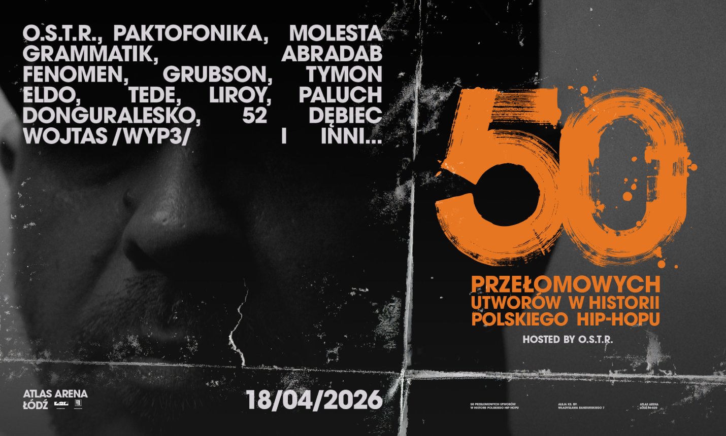 18 kwietnia 2026 roku Atlas Arena stanie się miejscem celebracji historii polskiego rapu. Wydarzenie „50 przełomowych utworów w historii polskiego hip-hopu”, którego gospodarzem jest łódzka legenda O.S.T.R., to przekrojowy koncert prezentujący najważniejsze kompozycje gatunku od jego początków po współczesność. Na scenie pojawią się czołowi przedstawiciele różnych dekad, co czyni to wydarzenie najważniejszym punktem roku dla fanów kultury ulicznej.